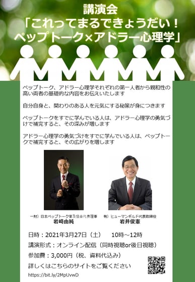 ペップトーク、アドラー心理学の第一人者である両氏によるオンラインコラボ講演会の開催が決まりました。