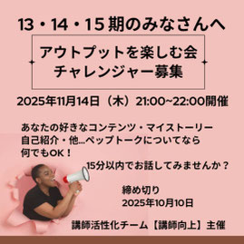 スピーカー13・14・15期から登壇してくださる方を募集しております。